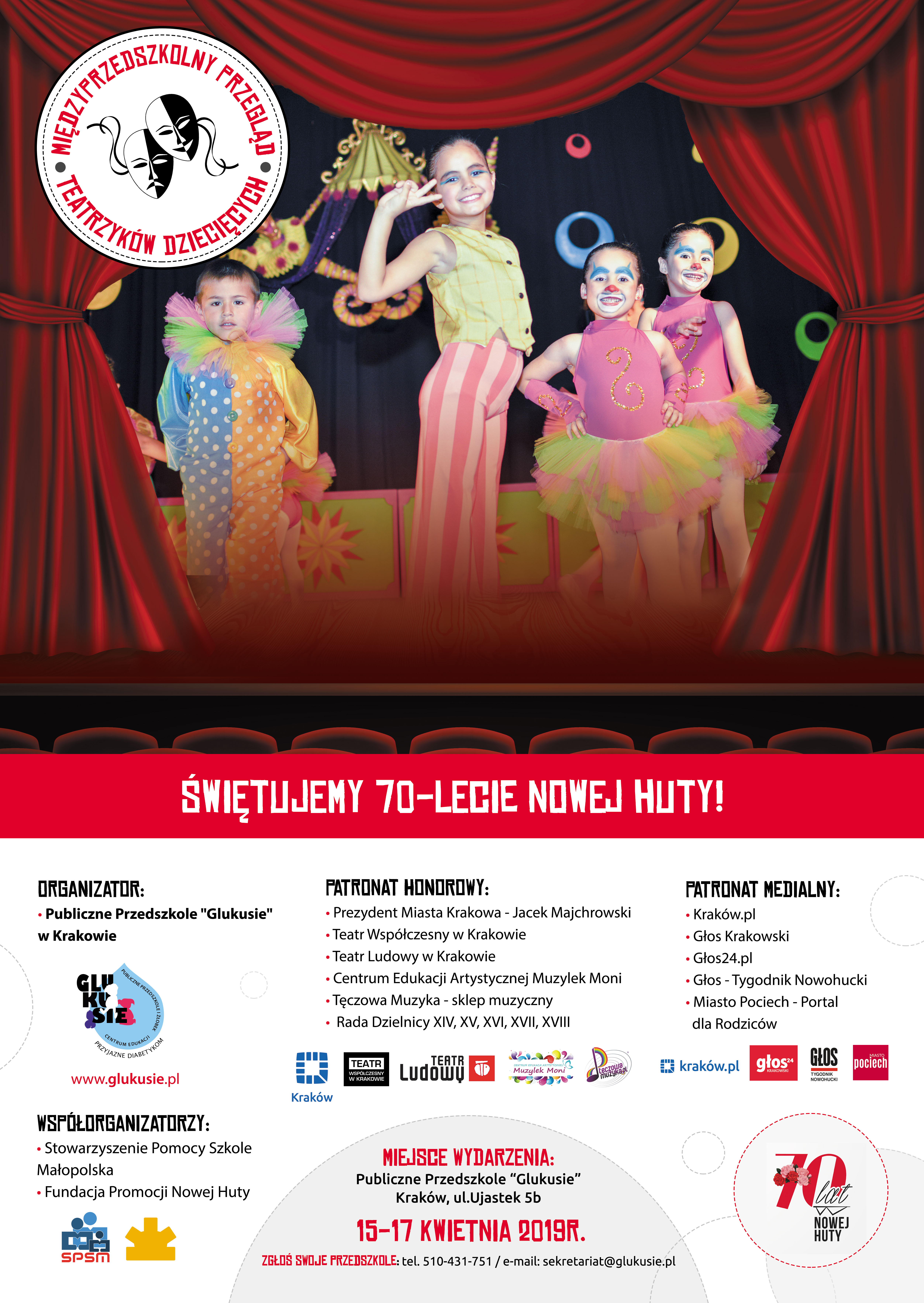 Przegląd odbędzie się w dniach 15–17 kwietnia 2019 r. w Publicznym Przedszkolu „Glukusie w Krakowie przy ulicy Ujastek 5b. O uczestnictwie w przeglądzie decyduje kolejność zgłoszeń. Zespoły można zgłaszać najpóźniej do 15 marca 2019 r. na adres sekretariat_ujastek@glukusie.pl